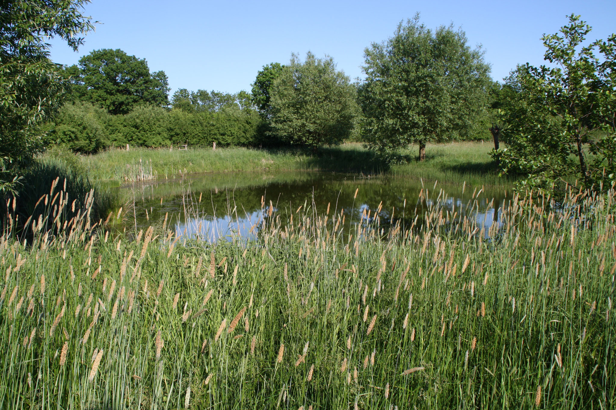 Ca. 1,5 ha artenreiche Feuchtwiese mit Teich, seit 1985 gepachtet.